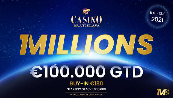 Začiatok septembra prinesie do najväčšieho slovenského poker roomu, Casino Bratislava Rebuy Stars, exkluzívny turnaj Millions 100.000€ GTD (6. – 13. 9. 2021).